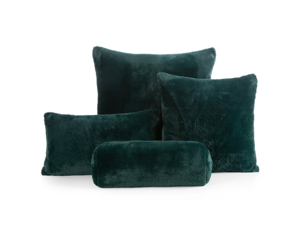 Kožešinový dekorační povlak na polštář NINA v tmavě zelené barvě 45 x 45 cm