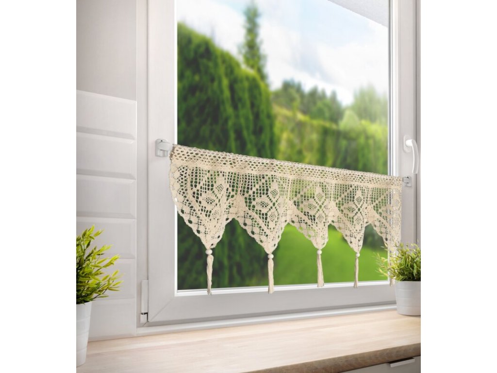 Kuchyňská krajková záclona patří do širokého sortimentu výrobků - najdete v něm i ubrusy , závěsy a povlaky na polštáře , které vám umožní zařídit interiér v uceleném a působivém stylu.