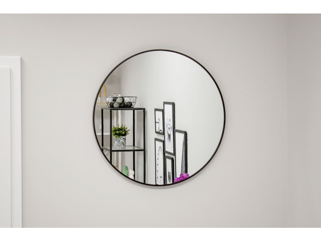 Rám zrcadla je vyroben z odolného kovu s černou práškovou povrchovou úpravou , která mu dodává eleganci a dlouhou životnost. Hloubka rámu 3,5 cm zajišťuje stabilitu a moderní vzhled.