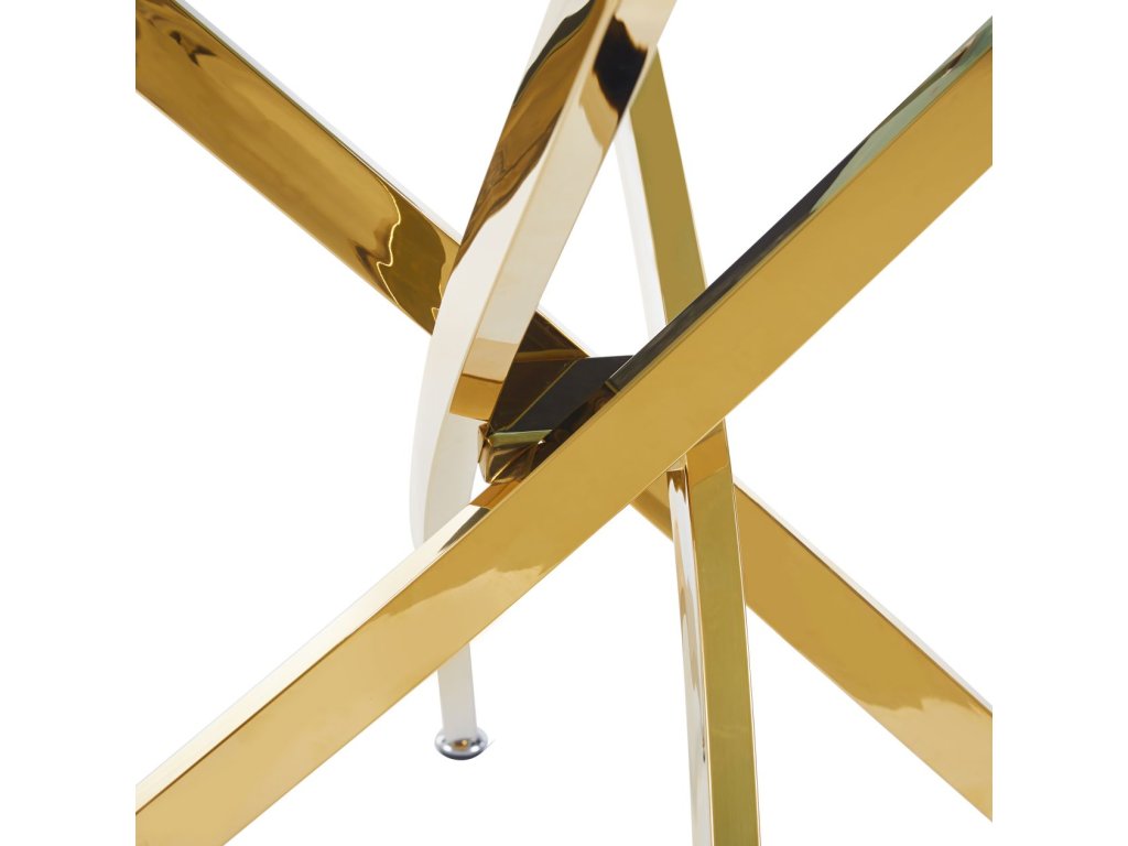 Vrchní deska je vyrobena z kvalitního tvrzeného skla , které je odolné, snadno se udržuje a zároveň působí mimořádně stylově. Mramorový dekor v černé barvě dodává stolové desce hloubku a výrazný vizuální efekt. Stabilní základnu tvoří chromované ocelové nohy ve zlaté barvě , jejichž moderní křížené provedení dodává stolu výjimečný vzhled a vysokou stabilitu.