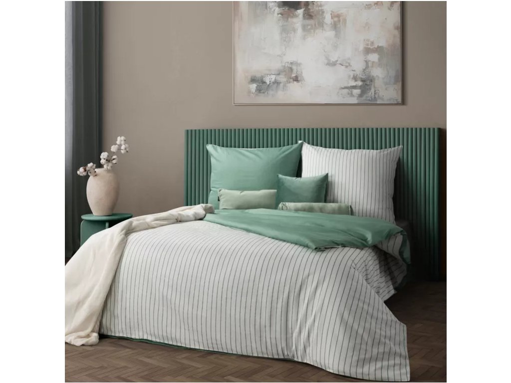 Skvěle se hodí do moderních, minimalistických i elegantních ložnic, kde chcete čisté linie, jemný vzor a možnost rychle měnit atmosféru pouhým otočením povlečení.