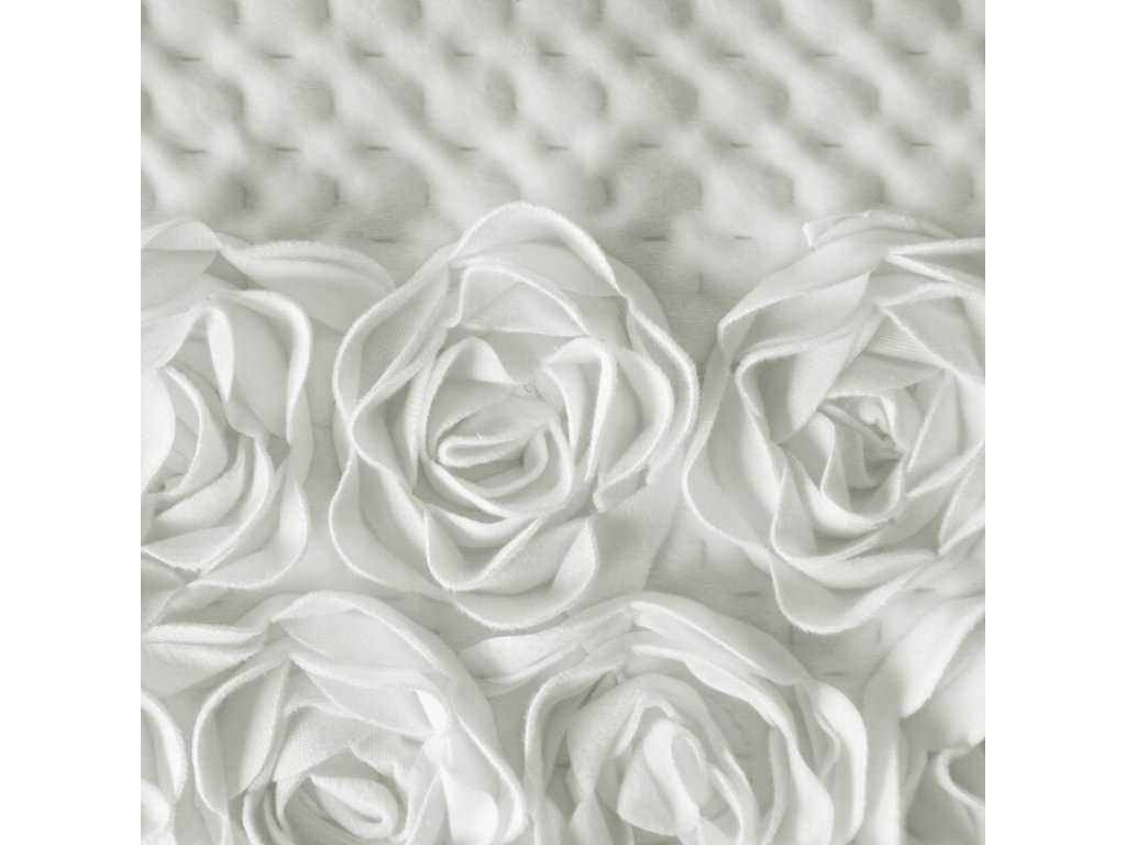 Nejvýraznějším prvkem je dekorativní aplikace růží , vytvořená z jemně formovaných látkových okvětních lístků. Tento 3D efekt dodává přehozu romantický, exkluzivní vzhled a činí z něj výraznou dekoraci postele, která přitáhne každý pohled.