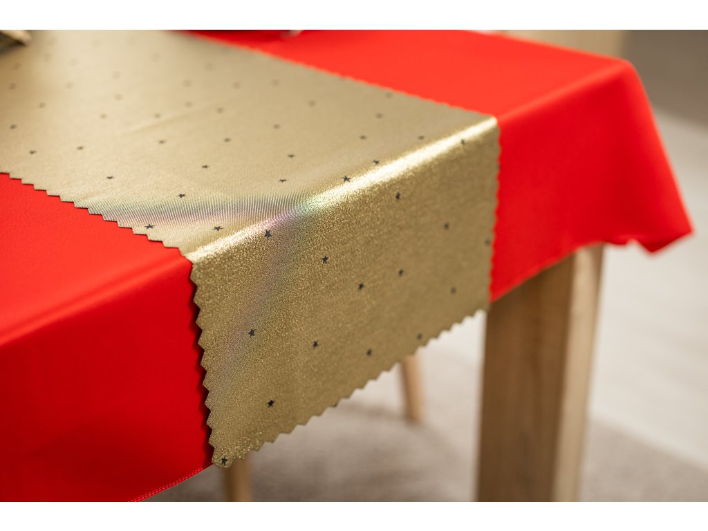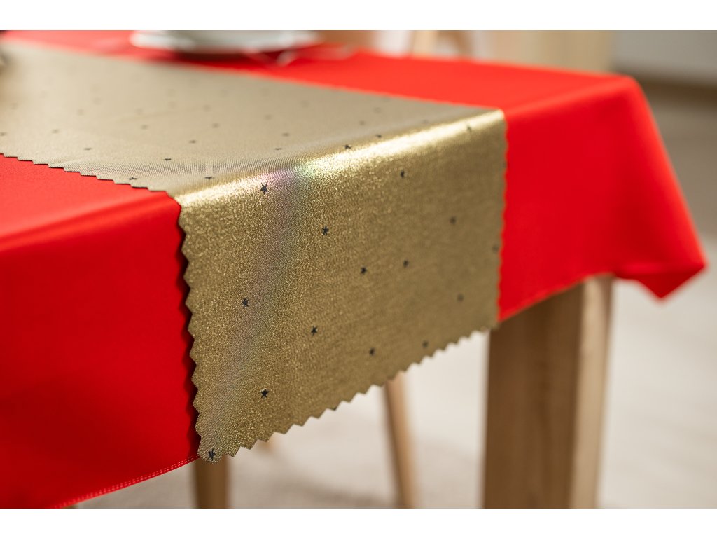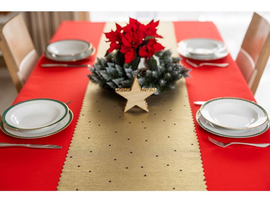 Vánoční se zlatými dekoracemi v podobě hvězdiček je dokonalou dekorací na stůl, která poslouží jak během Štědrého večera, tak i při jiných svátečních setkáních.