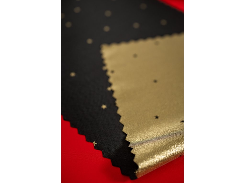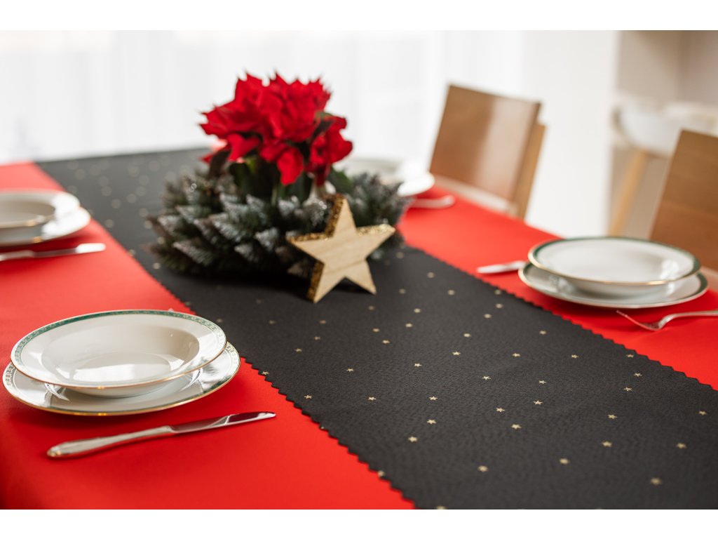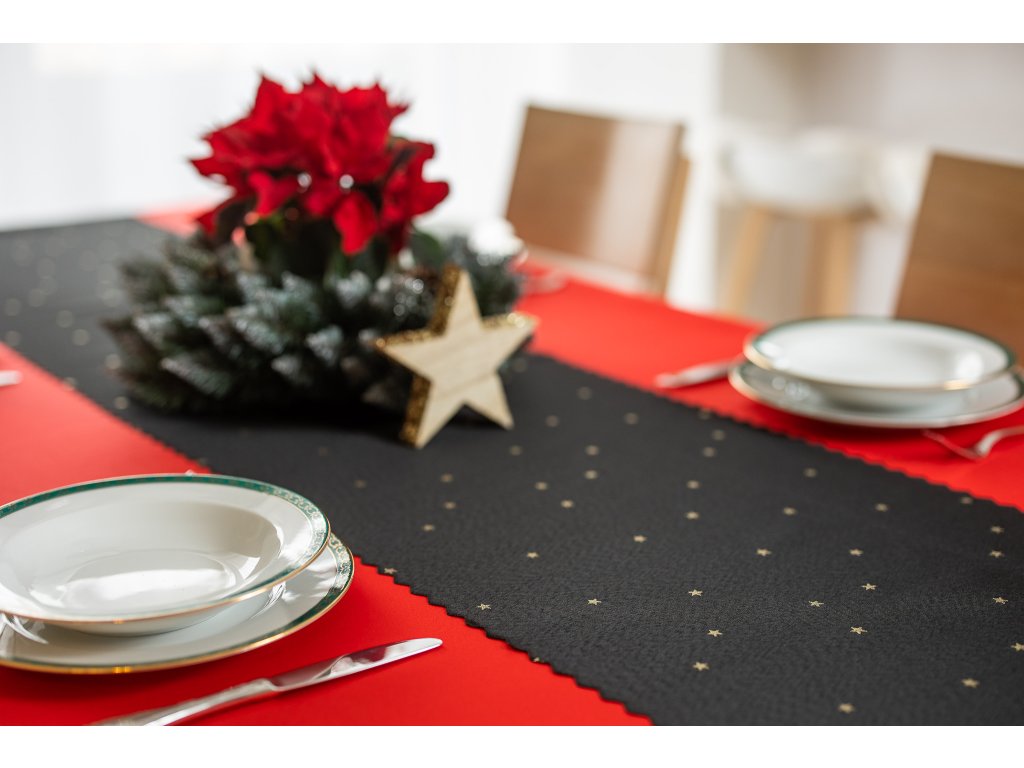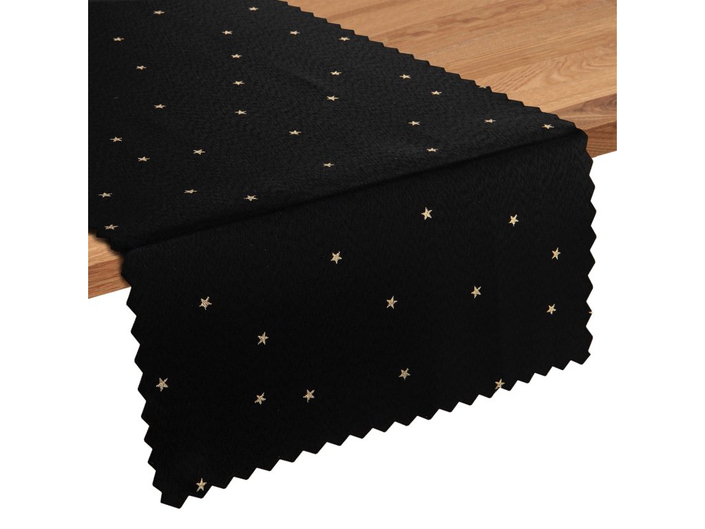 Luxusní Vánoční běhoun na stůl s hvězdami - černo-zlatý SW27
