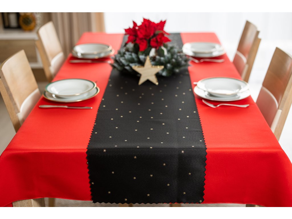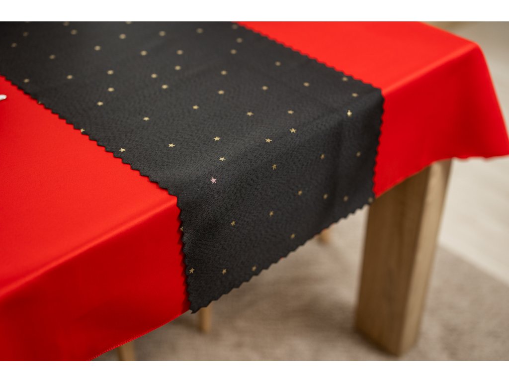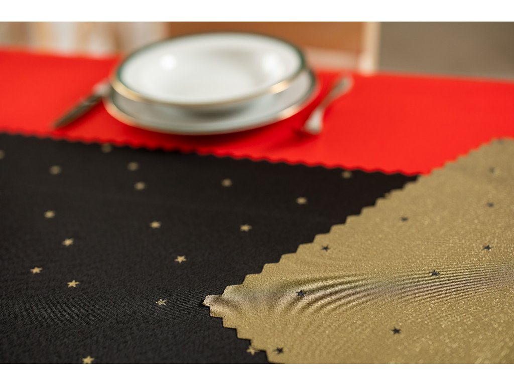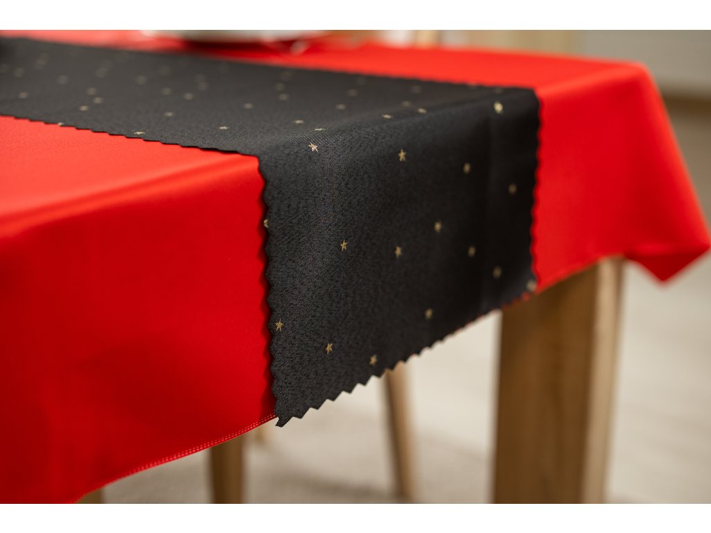 Luxusní Vánoční běhoun na stůl s hvězdami - černo-zlatý SW27