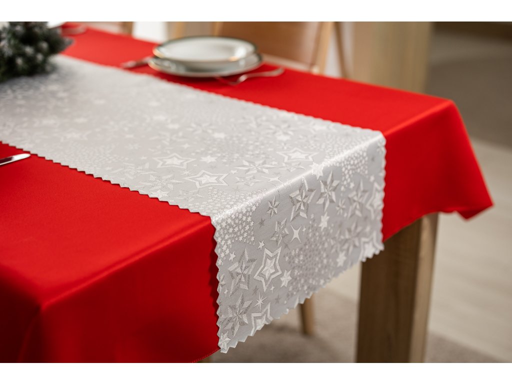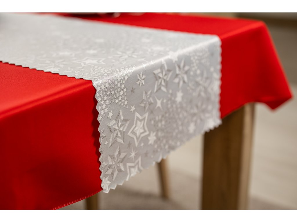 Luxusní Vánoční běhoun na stůl s hvězdami - stříbrný SW30