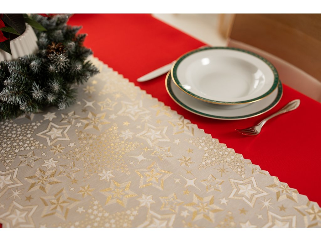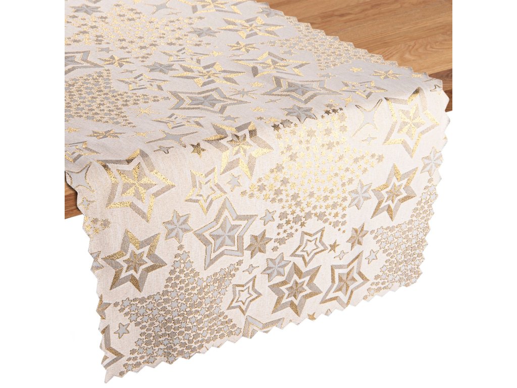 Luxusní Vánoční běhoun na stůl s hvězdami - zlatý SW29
