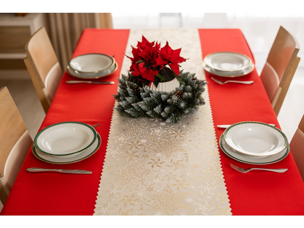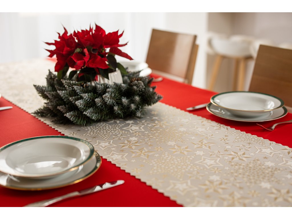 Vánoční se zlatými dekoracemi v podobě svězdiček je dokonalou dekorací na stůl, která poslouží jak během Štědrého večera, tak i při jiných svátečních setkáních.