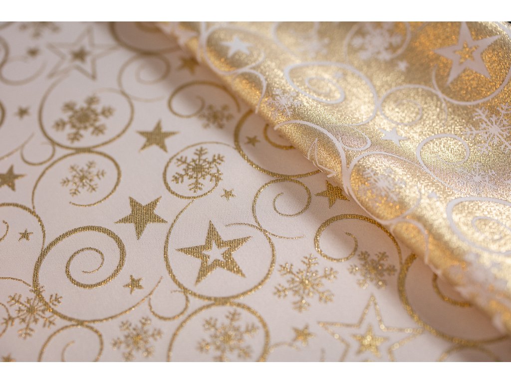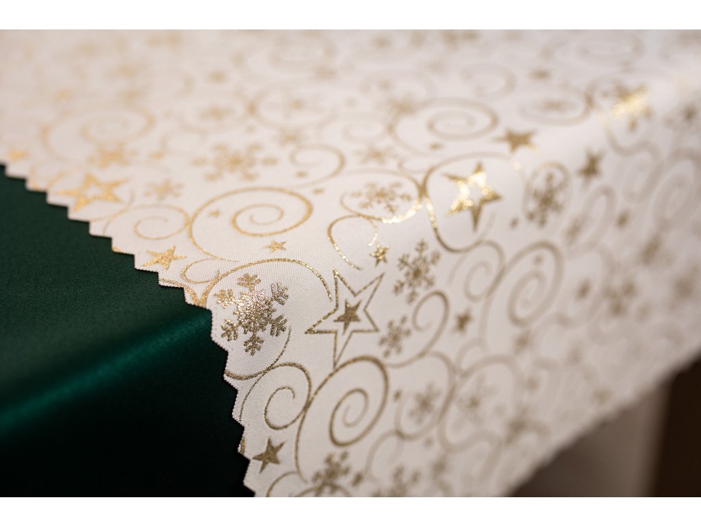 Luxusní Vánoční běhoun na stůl s hvězdami - zlatý SW5