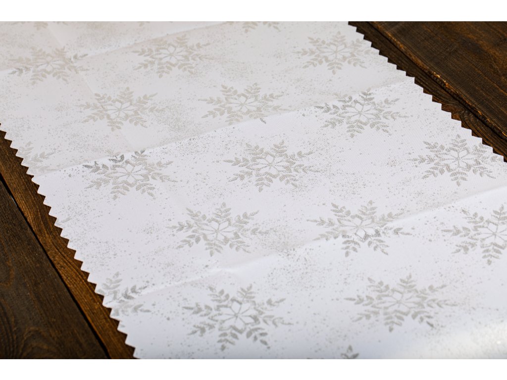 Luxusní Vánoční běhoun na stůl s vločkami - stříbrný SW15