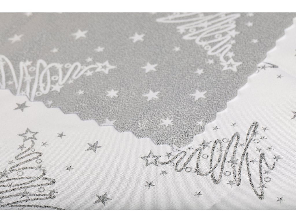 Luxusní Vánoční běhoun na stůl se stromky - stříbrný SW6