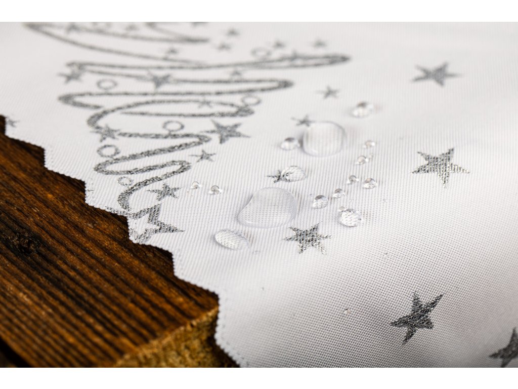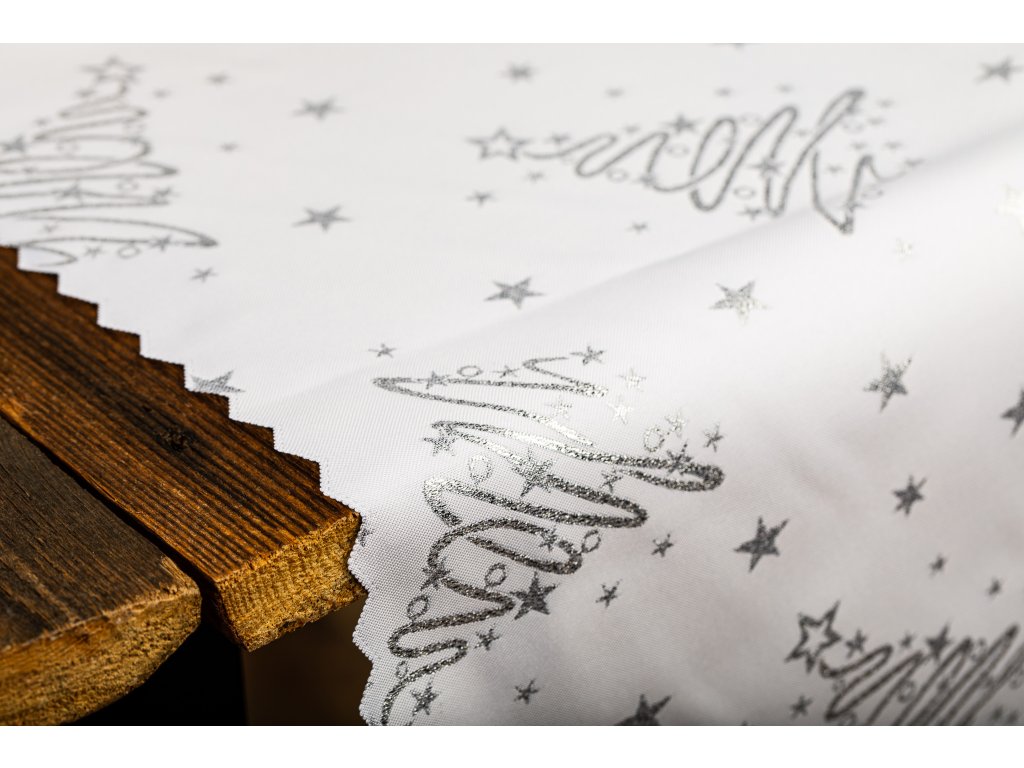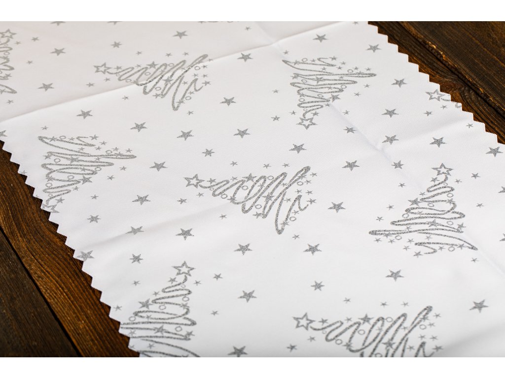 Luxusní Vánoční běhoun na stůl se stromky - stříbrný SW6