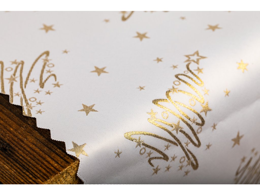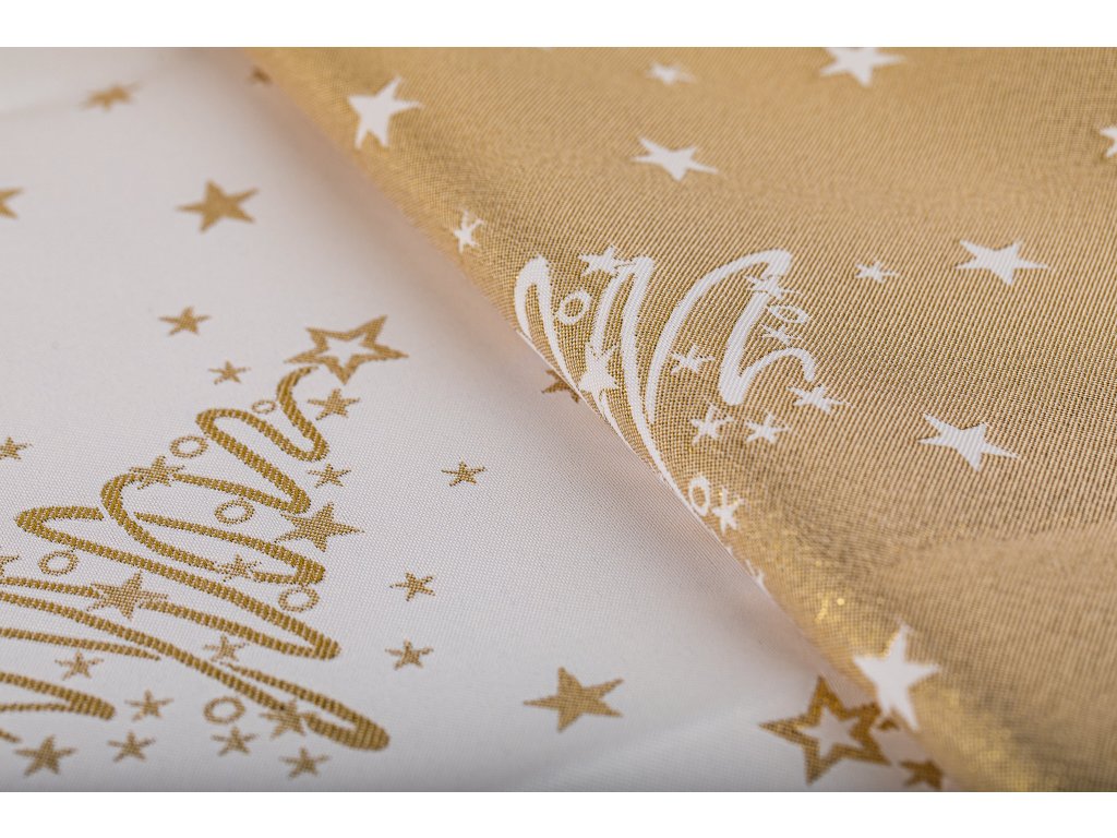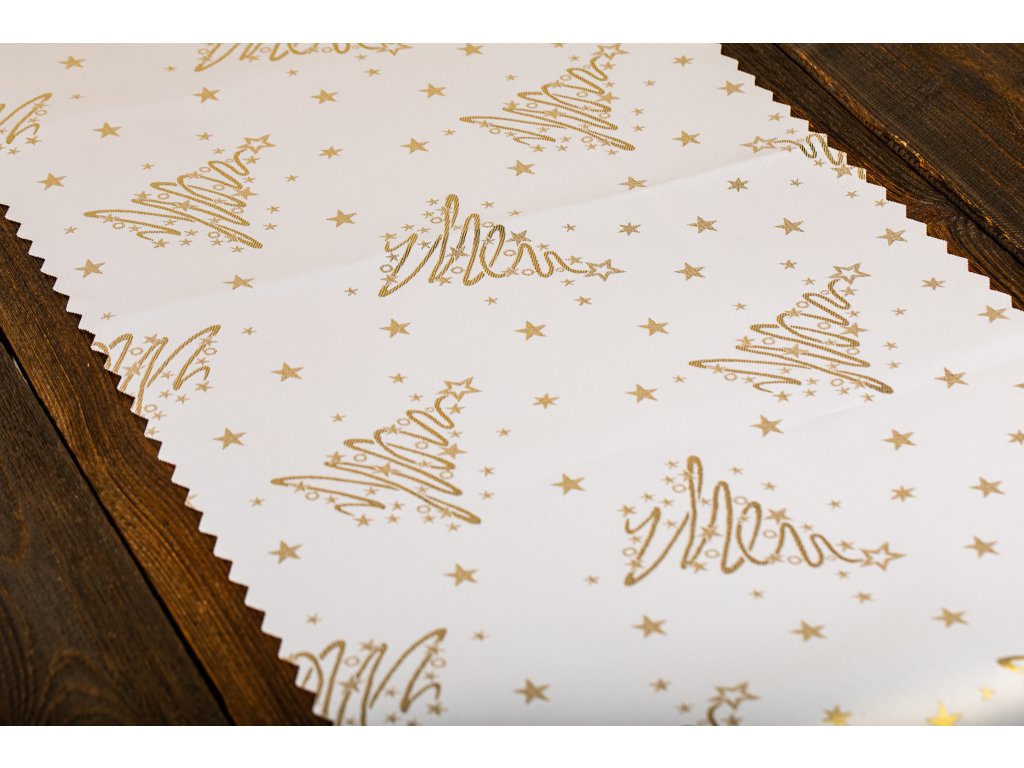 Luxusní Vánoční běhoun na stůl se stromky - zlatý SW7