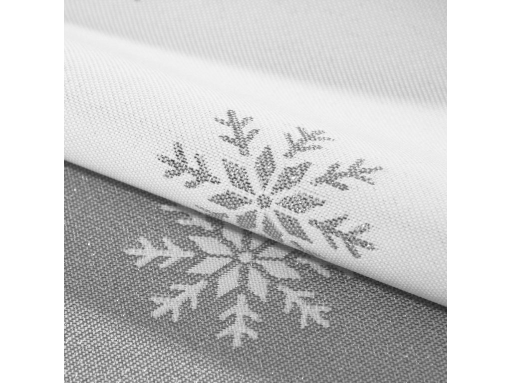 Běhoun CHRISTMAS SNOWFLAKE se stříbrnými dekoracemi v podobě vloček je dokonalou dekorací na stůl, která poslouží jak během Štědrého večera, tak i při jiných svátečních setkáních.