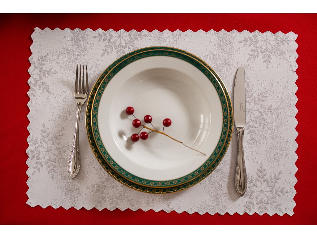 Luxusní Vánoční prostírání na stůl s vločkami stříbrné SW15 - sada 2 kusy