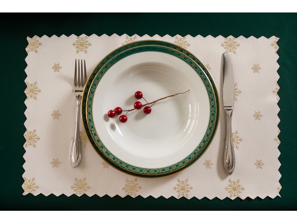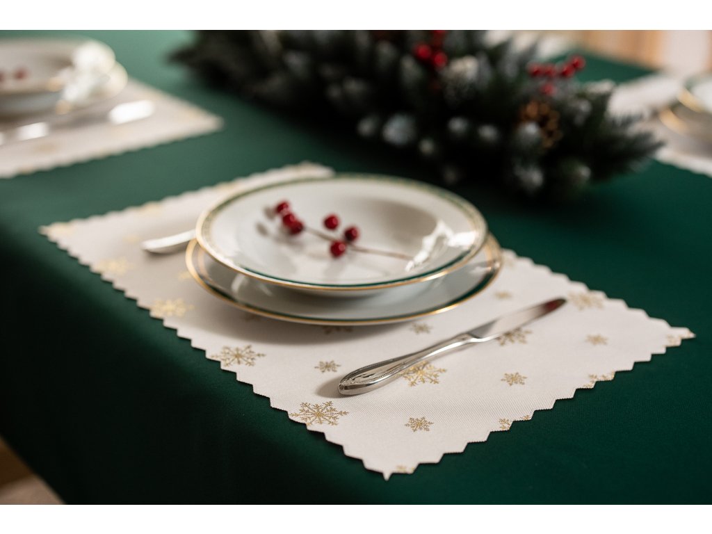 Luxusní vánoční prostírání ve zlaté barvě má kromě estetických funkcí také praktické funkce. Chrání desku stolu a přitom působí elegantně.