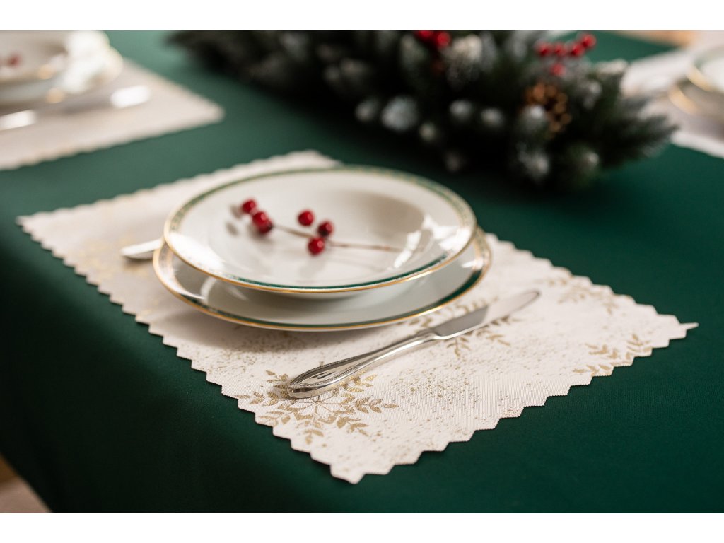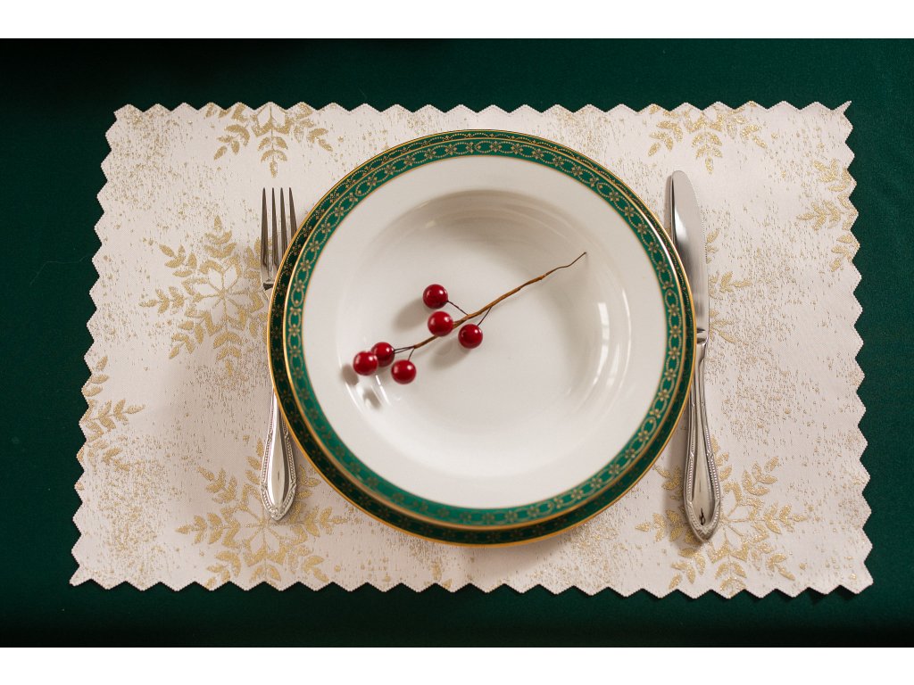 Luxusní vánoční prostírání ve zlaté barvě má kromě estetických funkcí také praktické funkce. Chrání desku stolu a přitom působí elegantně.