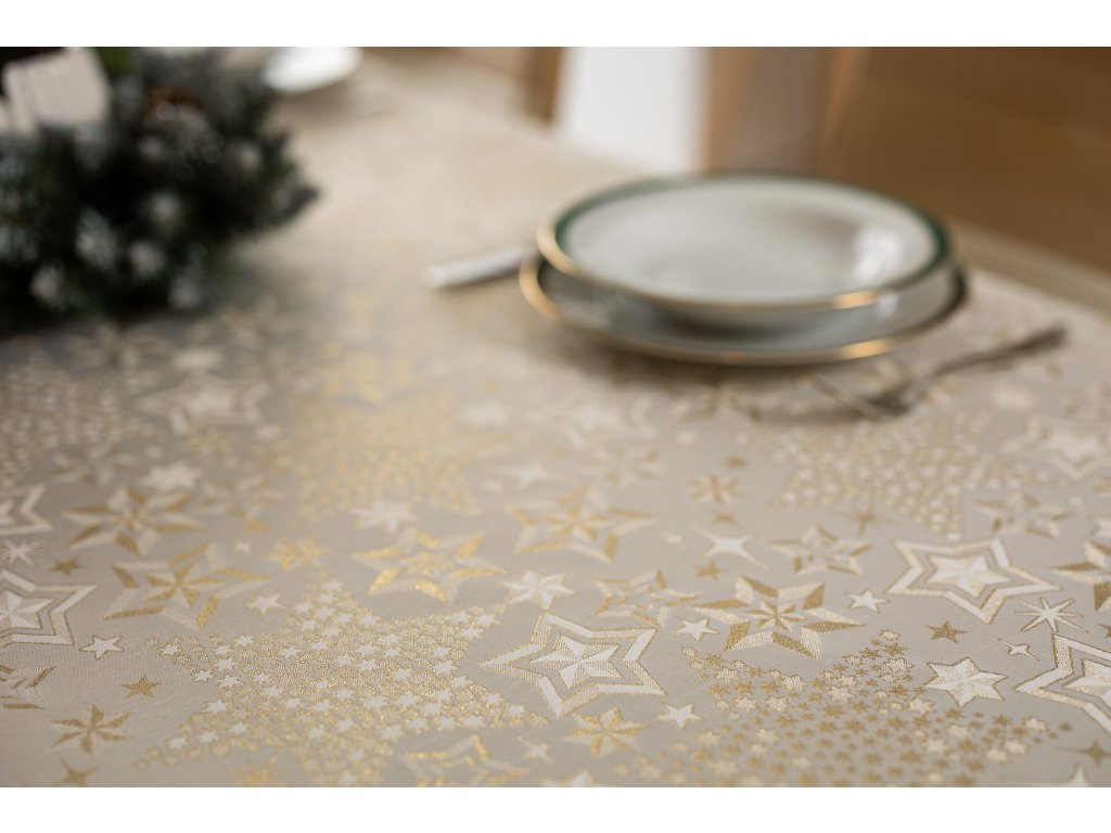 Luxusní Vánoční ubrus s hvězdami - zlatý SW29