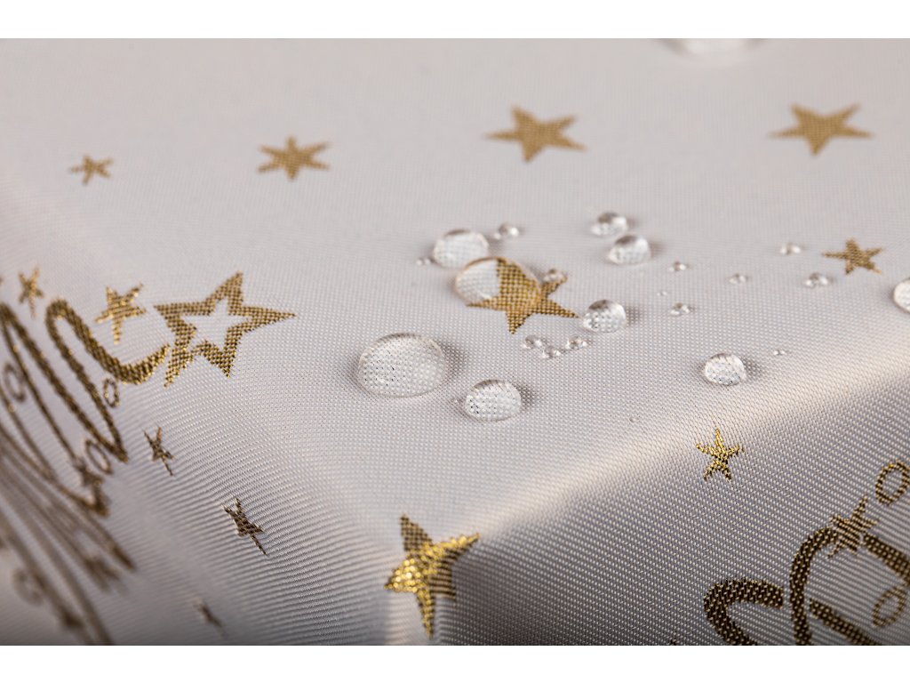 Látka je navíc obohacena o povrchovou úpravu odolnou vůči skvrnám (teflon). Tento typ povrchové úpravy neumožňuje absorpci tekutin do vláken látky, čímž ubrus chrání před skvrnami.