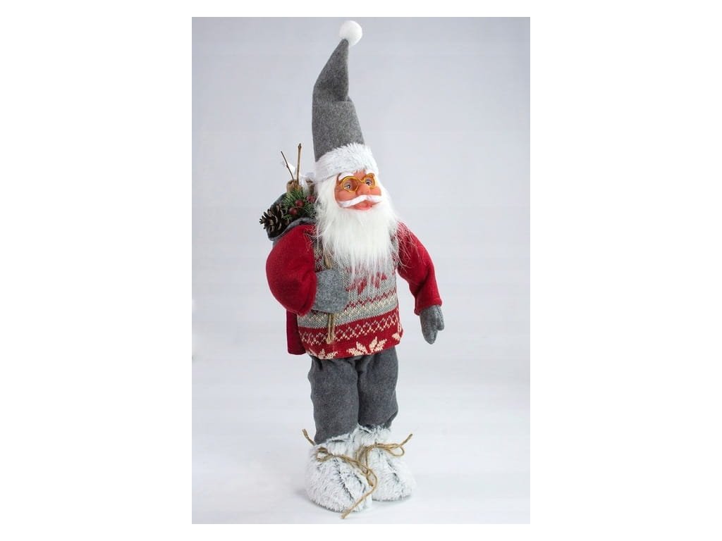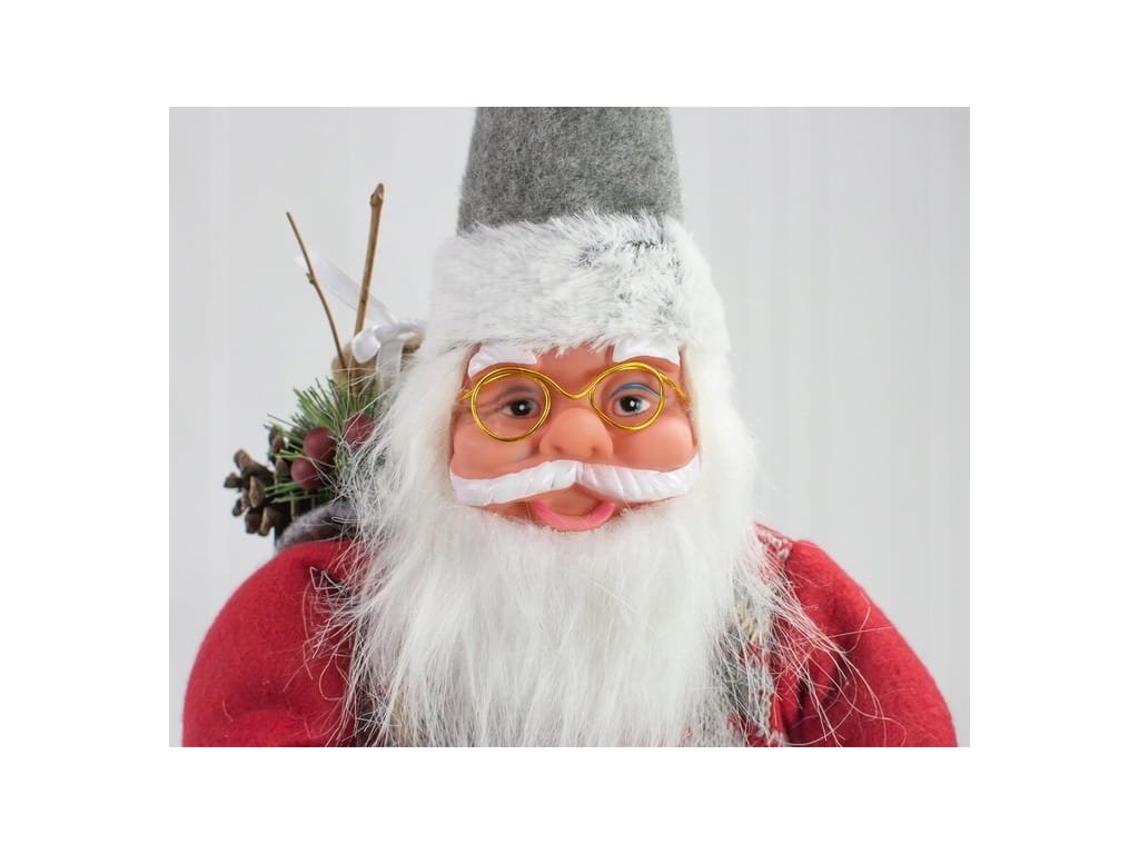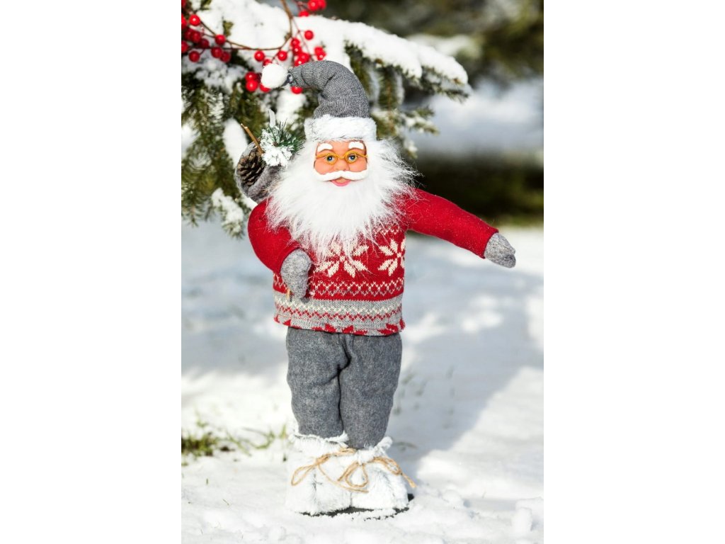 Vánoční figurka MIKULÁŠ skandinávsky je vyroben z plastu, na hlavě má klobouk lemovaný kožešinou, zakončený bambulí.