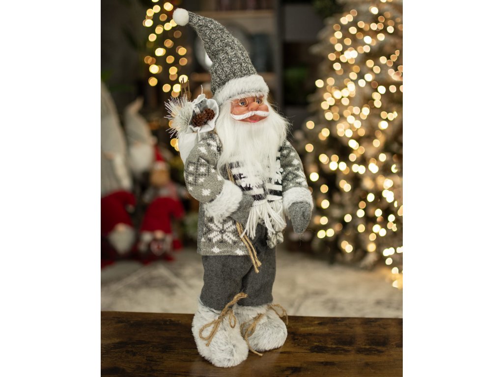 Vánoční figurka MIKULÁŠ skandinávsky je vyroben z plastu, na hlavě má klobouk lemovaný kožešinou, zakončený bambulí.