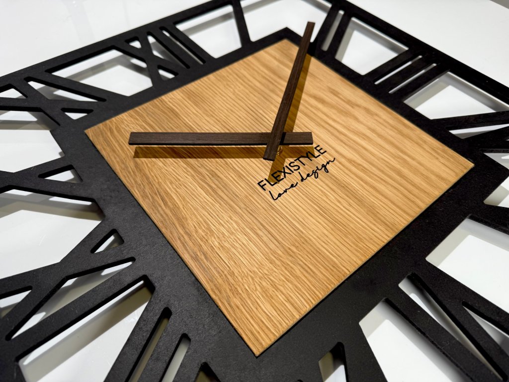 ✔️ Rafinované detaily – dřevěné ručičky dokonale ladí s ciferníkem, zatímco římské číslice vyřezané do materiálu vytvářejí atraktivní prostorový efekt.
