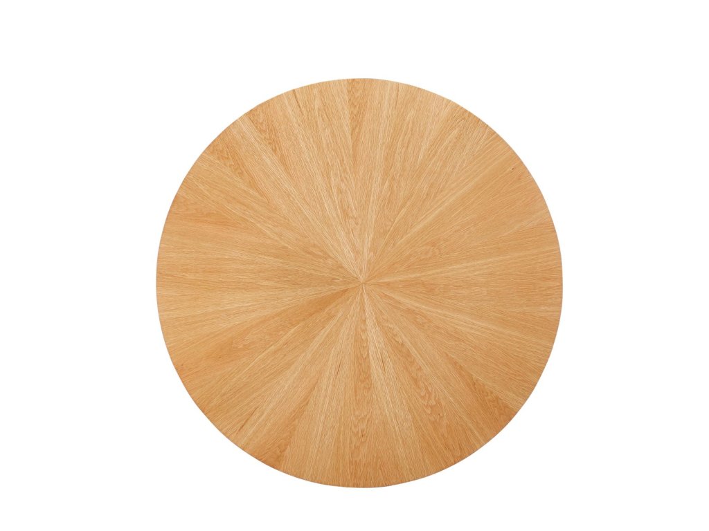 Moderní jídelní stůl ORION s kulatou deskou je ideální volbou pro všechny, kdo hledají harmonické spojení přírodního vzhledu dřeva a nadčasového moderního designu. Kulatá deska s jemnou, symetrickou kresbou dřeva v dekoru dub natural působí elegantně, přirozeně a vytváří příjemnou atmosféru při každém stolování.