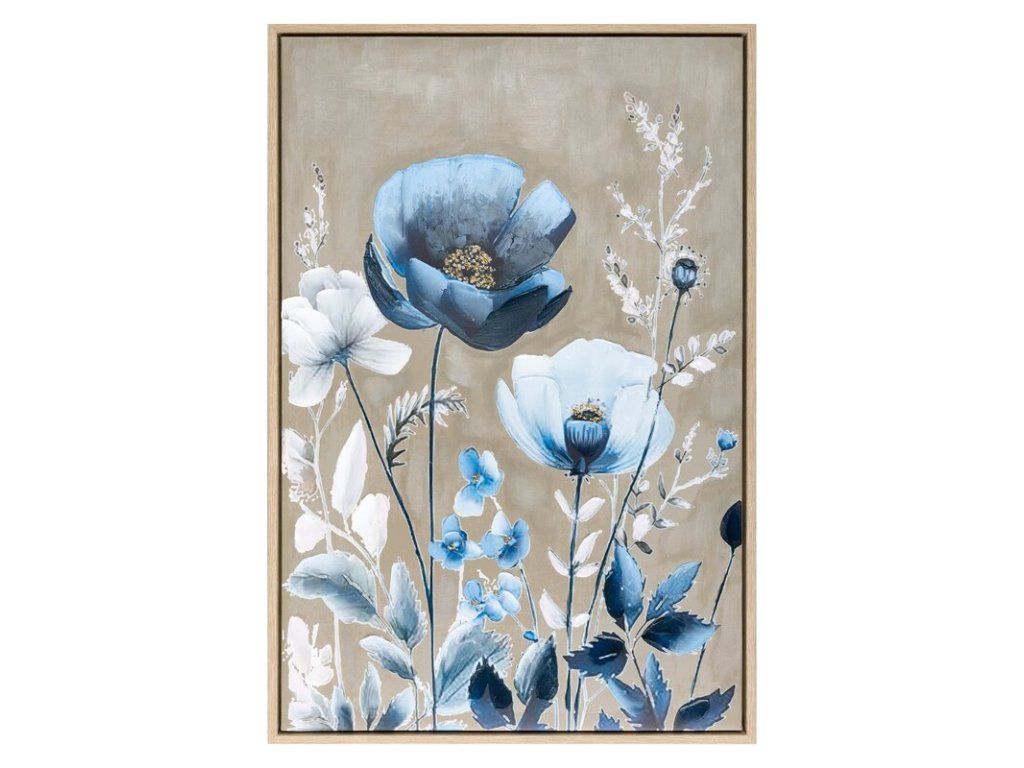 Pevné plátno se sytým modrým motivem je napnuté na odolném MDF rámu a kryté plastovým okrajem, který chrání obraz před poškozením.