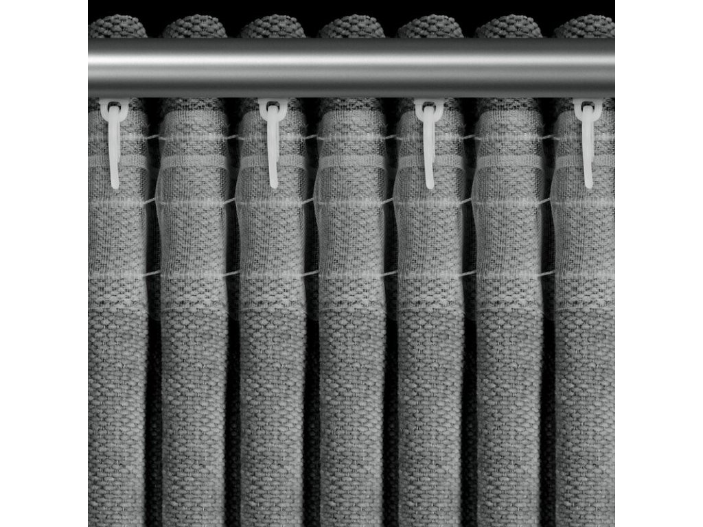 Závěs je hotový na zavěšení – vybaven řasící páskou s tunelovou funkcí , která umožňuje dvě možnosti montáže: uchycení pomocí háků nebo navlečení přímo na tyč. Tento systém zajistí plynulé, přirozené řasení látky a elegantní uspořádání.
