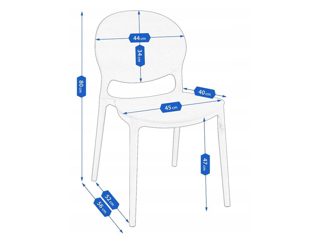 Oválné opěradlo a celá židle jsou vyrobeny z polypropylenu, který zajišťuje dlouhodobou odolnost a rovné nohy zajišťují dokonalou stabilitu.