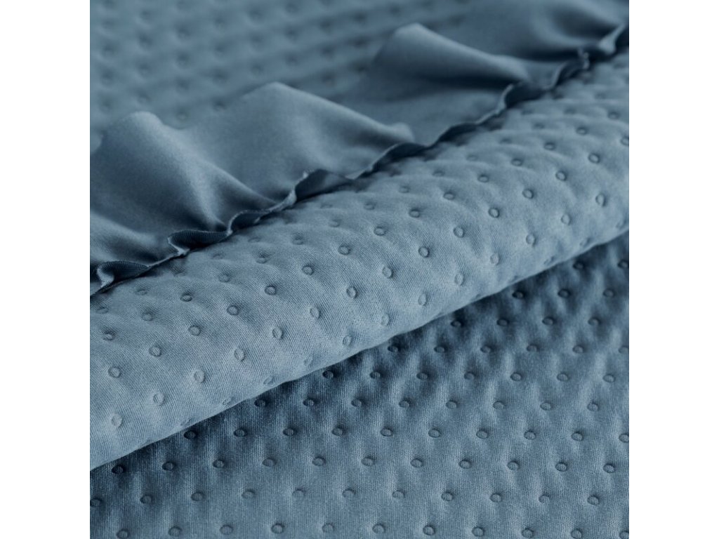 Přehoz na postel s dekorativním volánem 220x240 cm - modrý