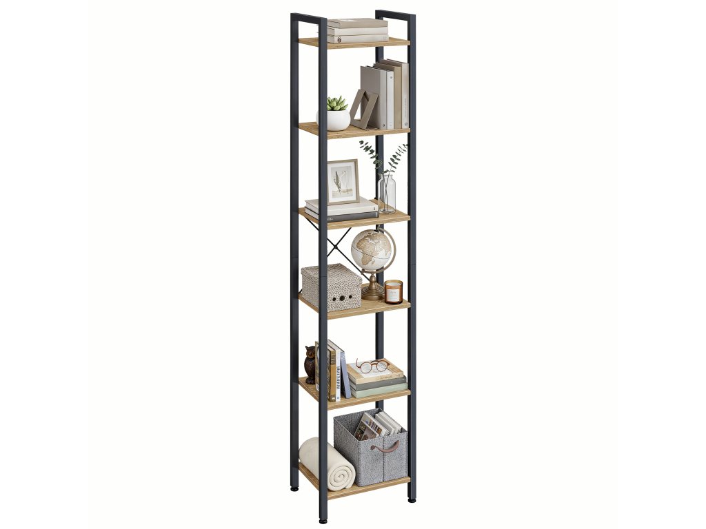 Moderní regál LLS101B88 kombinuje přírodní dekor dub artisan s černou ocelovou konstrukcí. Se 6 prostornými policemi poskytuje dostatek místa pro knihy, dekorace nebo rostliny. Stylový design a kvalitní zpracování z něj dělají ideální doplněk do každého interiéru.