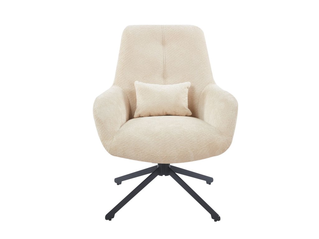 Dopřejte si pohodlí, které působí elegantně a zároveň je praktické pro každý den. Relaxační křeslo s otočným sedadlem v rozsahu 360° vám umožní plynule změnit směr bez přesouvání – ideální pro čtení, rozhovor i odpočinek u kávy. Béžové čalounění z tkaniny Egon působí luxusně a zútulní prostor, zatímco černá kovová konstrukce s práškovou povrchovou úpravou dodává moderní kontrast a stabilní základ.