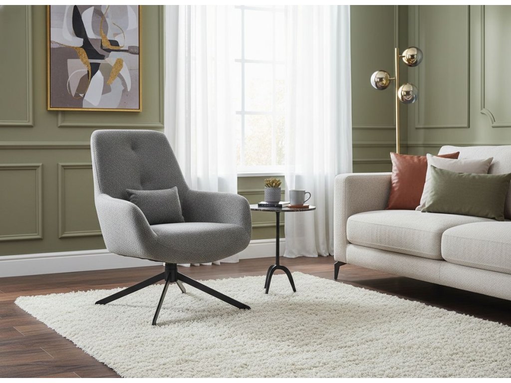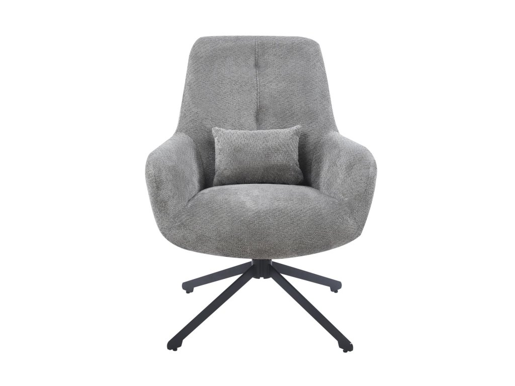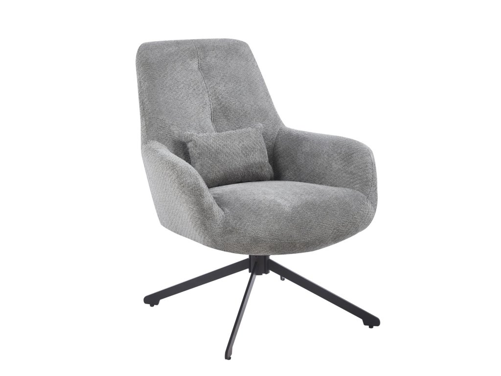 Dopřejte si pohodlí, které působí uhlazeně a moderně. Relaxační křeslo s otočným sedadlem v rozsahu 360° vám umožní plynule změnit směr bez přesouvání – ideální pro čtení, rozhovor i odpočinek po náročném dni. Šedé čalounění z tkaniny Egon je nadčasové, elegantní a snadno kombinovatelné se dřevem, kamenem i kovovými doplňky. Černá kovová konstrukce s práškovou povrchovou úpravou dodává křeslu stabilitu a stylový kontrast.