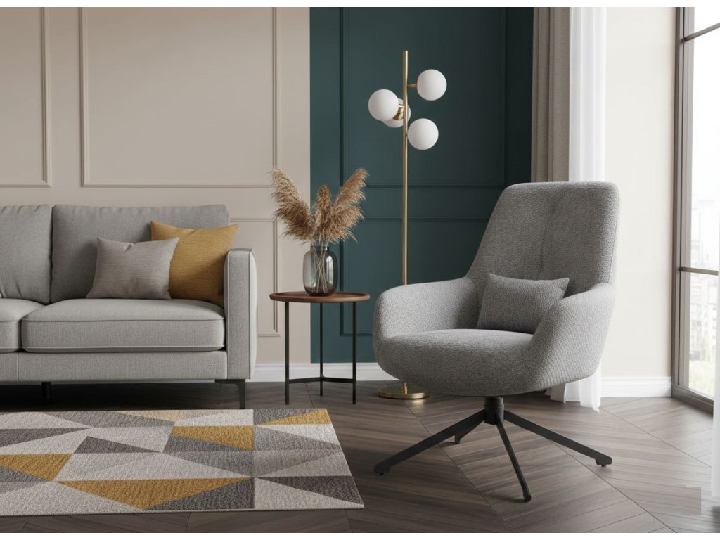 Křeslo vynikne v moderních, minimalistických, loftových i skandinávských interiérech. Šedá barva působí neutrálně a sofistikovaně, černé detaily prostor elegantně ukotví – skvělá volba do obývacího pokoje, ložnice i domácí pracovny.