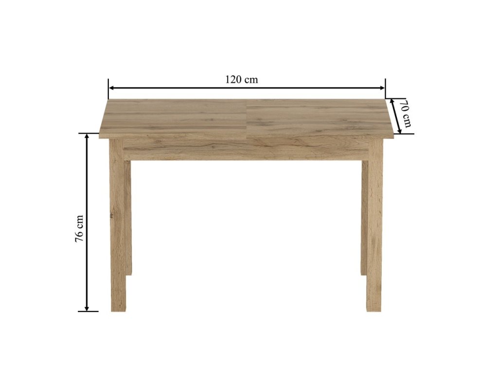 Vyvážené proporce 160 × 70 cm po rozložení a komfortní výška 76 cm dělají ze stolu praktický a zároveň reprezentativní prvek do kuchyně či jídelny – s moderním vzhledem a snadnou údržbou.