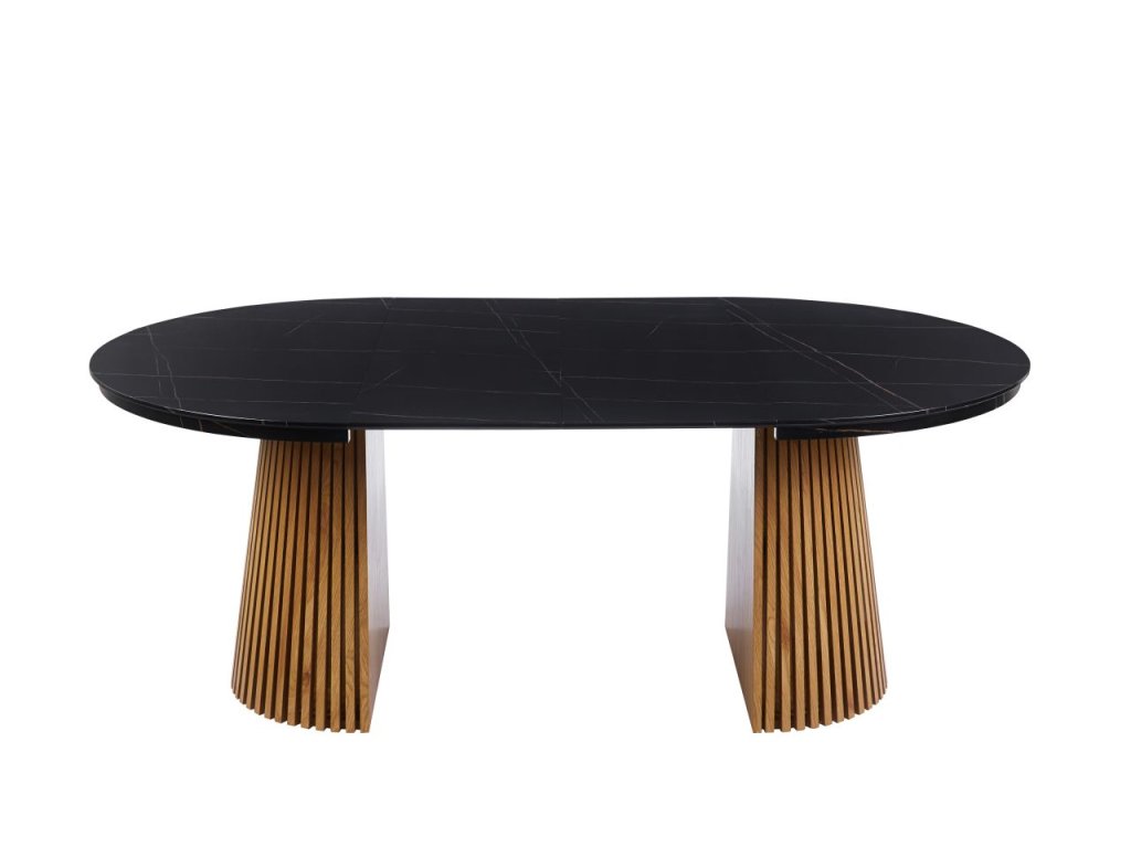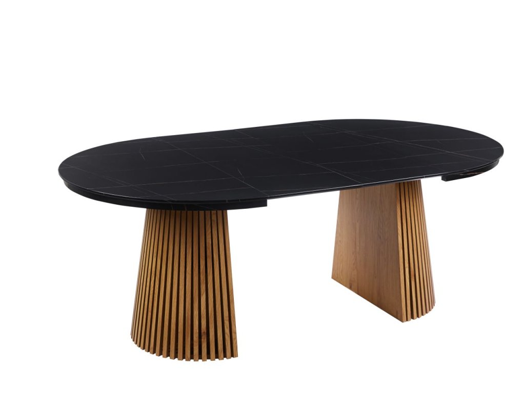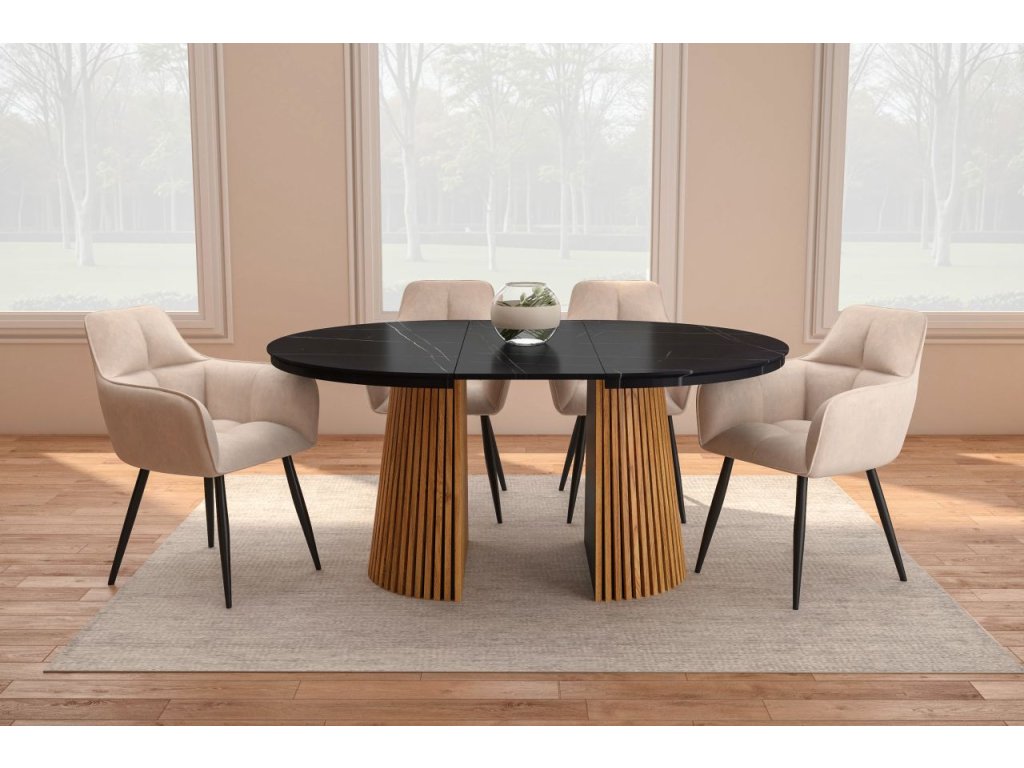 Rozkládací jídelní stůl MARBELLO FLEX Black Marble představuje luxusní spojení moderního designu a praktické funkčnosti. Elegantní stolová deska v dekoru černého mramoru v kombinaci s přírodním dubovým akcentem vytváří výrazný, ale zároveň nadčasový vzhled, který se dokonale hodí do moderních, industriálních i glamour interiérů.