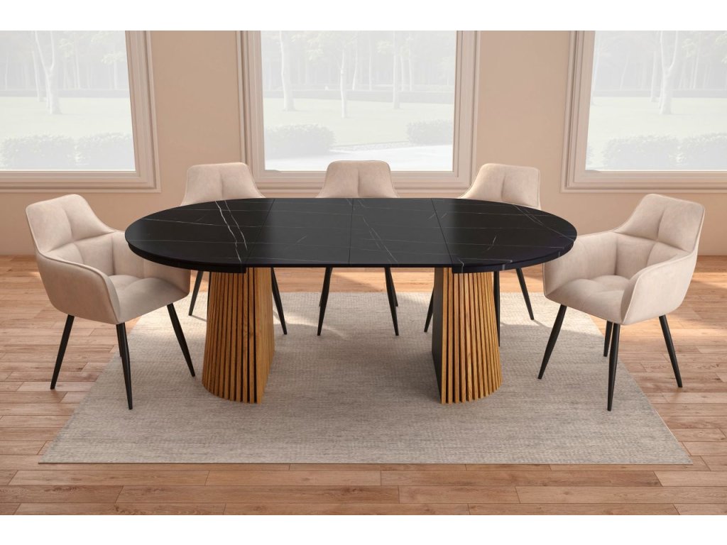 Stůl MARBELLO FLEX Black Marble je ideální volbou pro ty, kteří hledají designový jídelní stůl s výrazným charakterem a maximální flexibilitou.