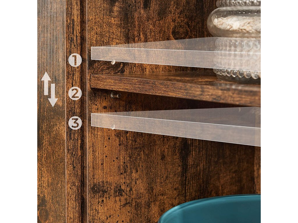 Velkou výhodou skříňky jsou prostorné police a prostor uzavřený dvířky, které uspořádají vaši sbírku knih, časopisů, figurek či vystaví květináče a krásně zarámované fotografie. Posuvná dvířka komody skryjí předměty, které nechcete, aby bylo momentálně vidět.