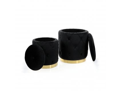 Spodní lišta v obou taburetek je vyrobena ze zlatavé chromové oceli se saténovou povrchovou úpravou, která dodatečně zvýrazňuje hloubku barvy obou taburetek a zároveň dodává glamour, tak charakteristický pro glamour styl.