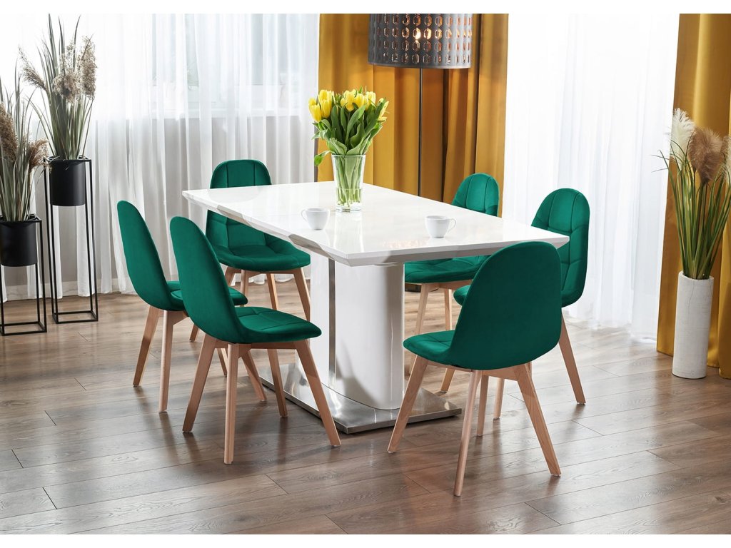 Design sametové jídelní židle COLIN jednoznačně odkazuje na skandinávské trendy.