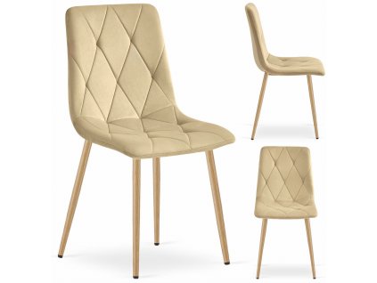 Sametová jídelní židle LIBRA - béžová se zlatýma nohama