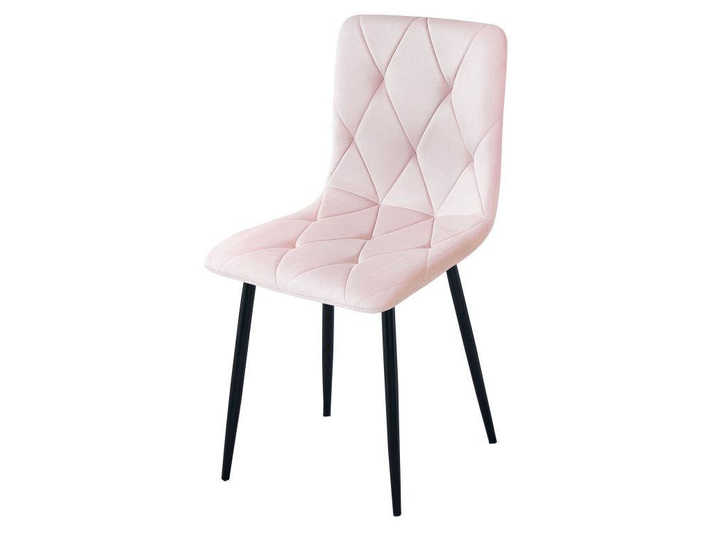Sametová jídelní židle LIBRA - světle růžová s černýma nohama