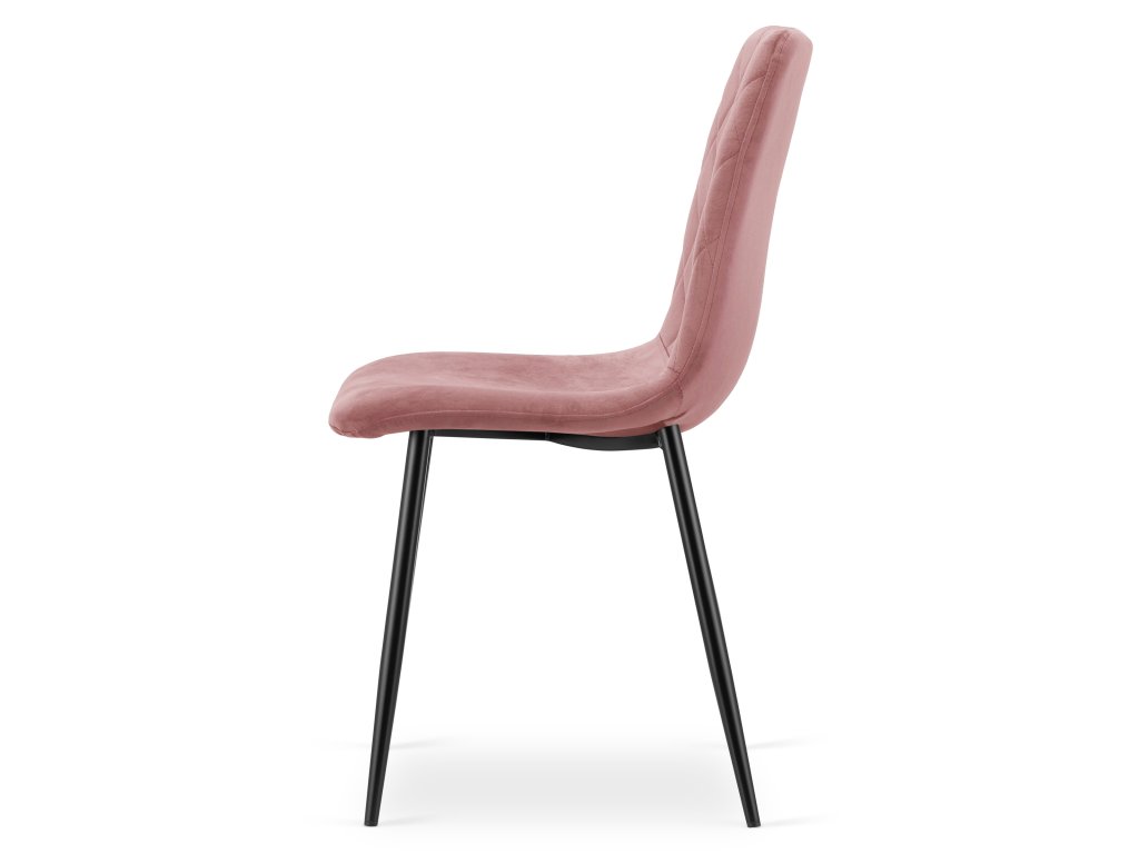 Stabilní kovové nohy v matné černé barvě dodávají židli moderní kontrast a zajišťují pevnost i dlouhou životnost. Růžová barva působí jemně a romanticky, přičemž krásně vynikne v kombinaci se zlatými, béžovými či šedými doplňky.