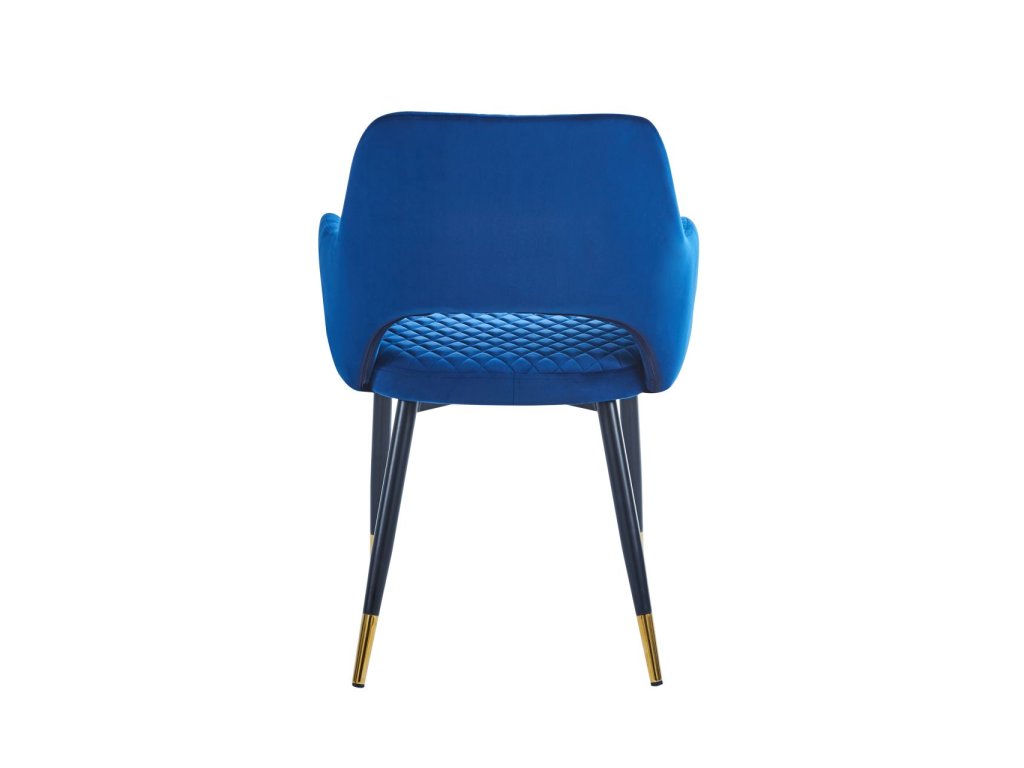 Elegantní jídelní židle ROYAL ze sametu v krásné tmavě modré barvě přináší do vašeho interiéru propojení komfortu a stylu. Sametové čalounění dodává luxusní vzhled, zatímco černé kovové nožičky se zlatým ukončením zajišťují stabilitu a eleganci.
