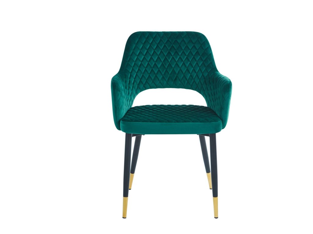 Sametová jídelní židle z ROYAL (tmavě zelená) s černo-zlatými nožičkami