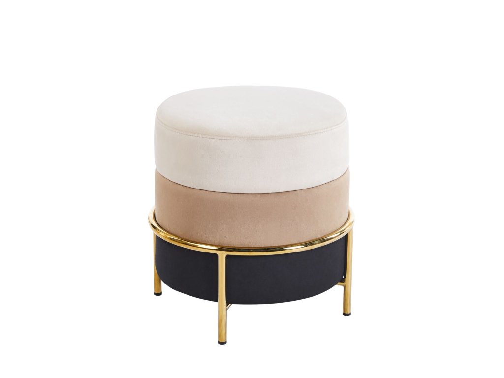 Sametová taburetka RONDO se zlatou konstrukcí (béžová/cappuccino/černá)