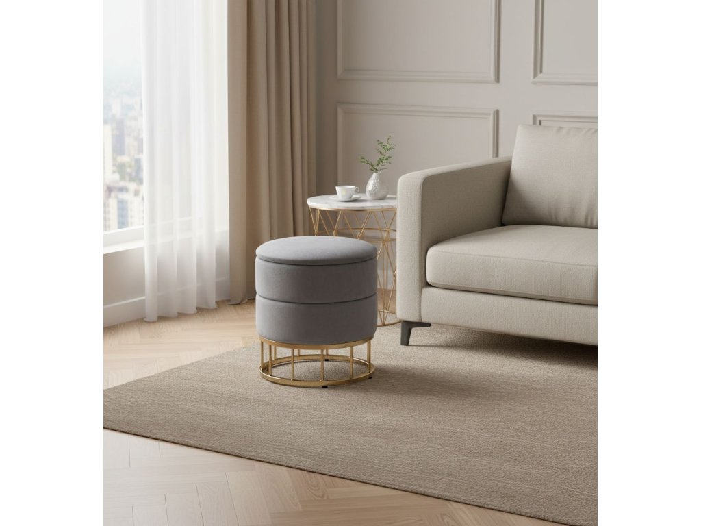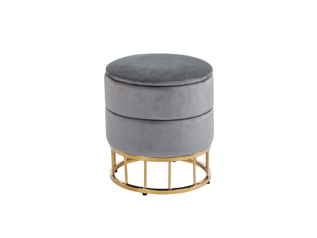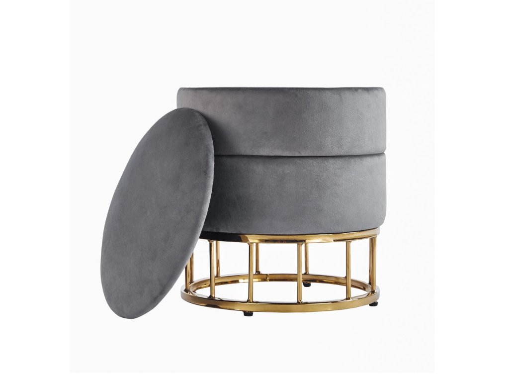 Sametová taburetka s úložným prostorem AUREA GOLD - šedá