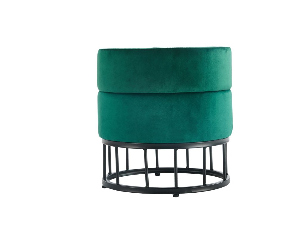Taburetka AUREA v tmavě zeleném veluru je výrazný, ale stále elegantní doplněk, který dodá interiéru hloubku a charakter. Tmavě zelená barva působí luxusně a útulně zároveň, přičemž černá kovová konstrukce jí dodává moderní, čistý a nadčasový vzhled.