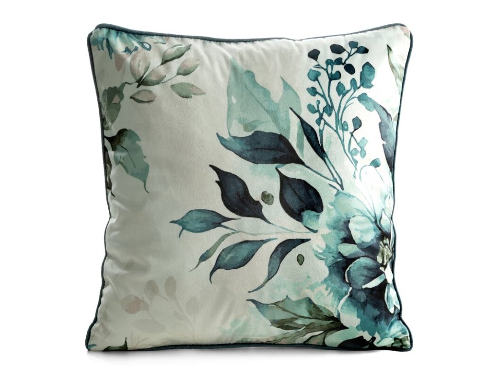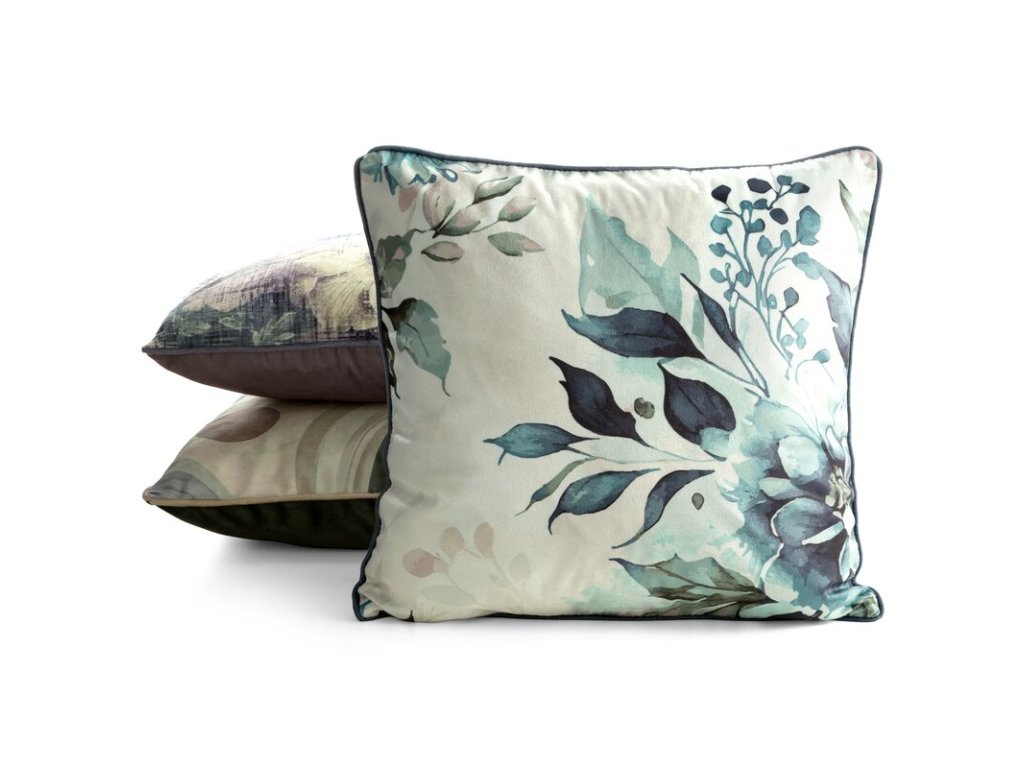 Romantický rostlinný motiv v tlumených odstínech mátové a světle béžové vytváří harmonickou atmosféru a krásně oživí křeslo i postel.